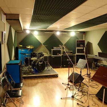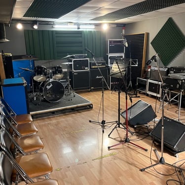 Lo studio è provvisto di due sale prova insonorizzate, climatizzate e con tutta la strumentazione necessaria alla tua band